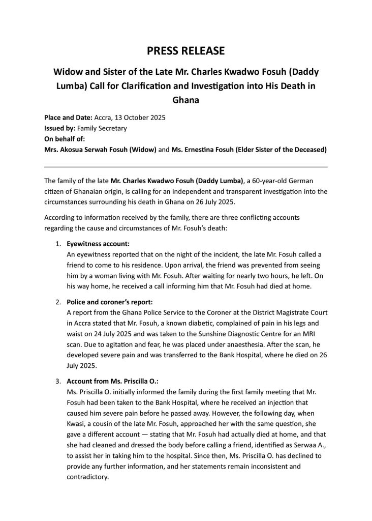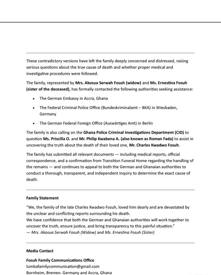 The family has since contacted the German Embassy in Ghana, the Federal Criminal Police Office, and the German Federal Foreign Office to seek their assistance to get the the bottom of what caused the death of Daddy Lumba.