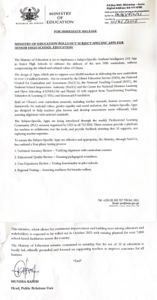 Concluding the statement, the Ministry called on schools to embrace the new tools, saying, “This is a transformative step in reshaping the future of education in Ghana. We urge all stakeholders to take full advantage of it.”