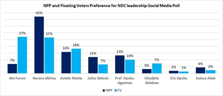 A new social media poll released by Global InfoAnalytics has revealed contrasting preferences between NPP voters and floating voters in the ongoing conversation about potential NDC leadership.