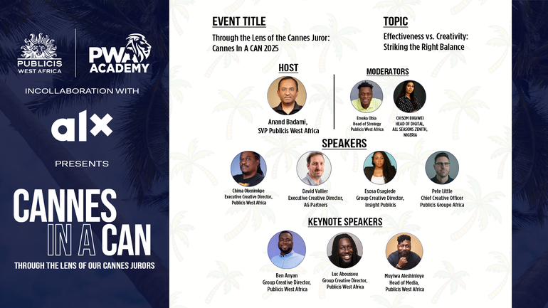 Publicis West Africa, through its learning and development platform PWA Academy, hosted Cannes in a Can, an exclusive session designed to bring the insights from the Cannes Lions International Festival of Creativity 2025 to all its offices and affiliates in western and central Africa and inspire world-class creative excellence across the region.
