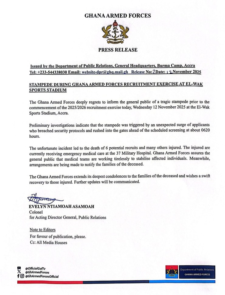 Reports in the local media say 6 more people have died with their bodies deposited at the 37 military hospital morgue.