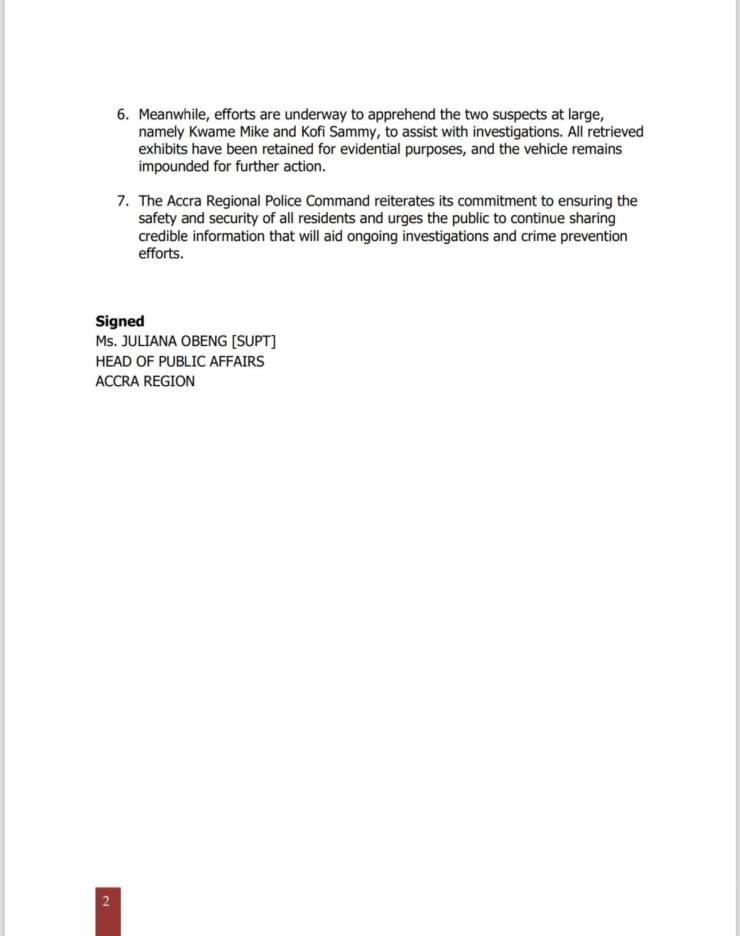 A police spokesperson said, “During the search, officers retrieved a cutlass from the back of suspect Osei Antwi’s vehicle, a black Honda CR-V with registration number DV 3145-2025.